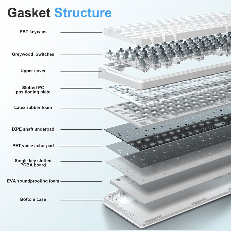 · 【Структура пракладкі з гукапаглынальнай пенай】- Структура пракладкі забяспечвае найвышэйшую якасць з вялікай трываласцю і стабільнай працай. Абсталяваны 4 пластамі больш тоўстай гукапаглынальнай пены, сіліконавай дэмпфернай накладкай, якая зніжае шум на 40% і выдаляе 80% глухога гуку. Прыўнясенне сметанковага гучання, натуральная і чыстая зваротная сувязь, больш ніякіх карыесных шумоў.