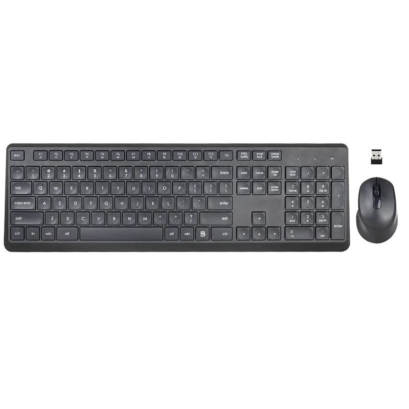 Чорная бесправадная клавіятура 2,4 ГГц і комба мышы