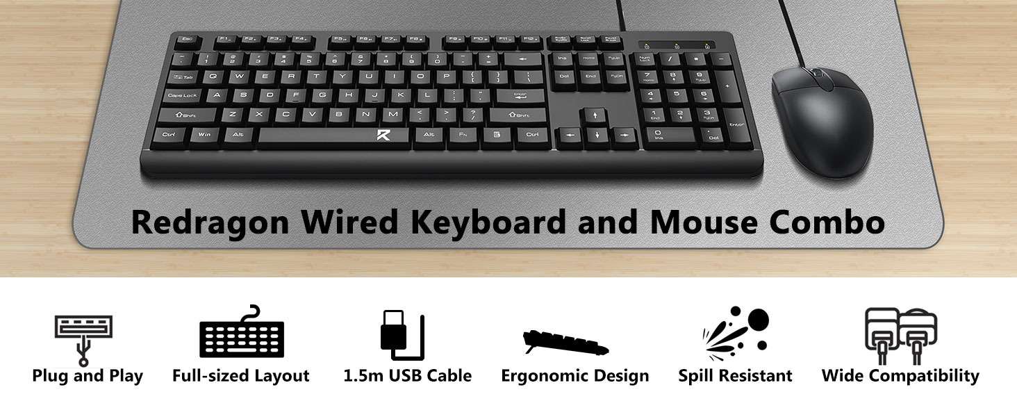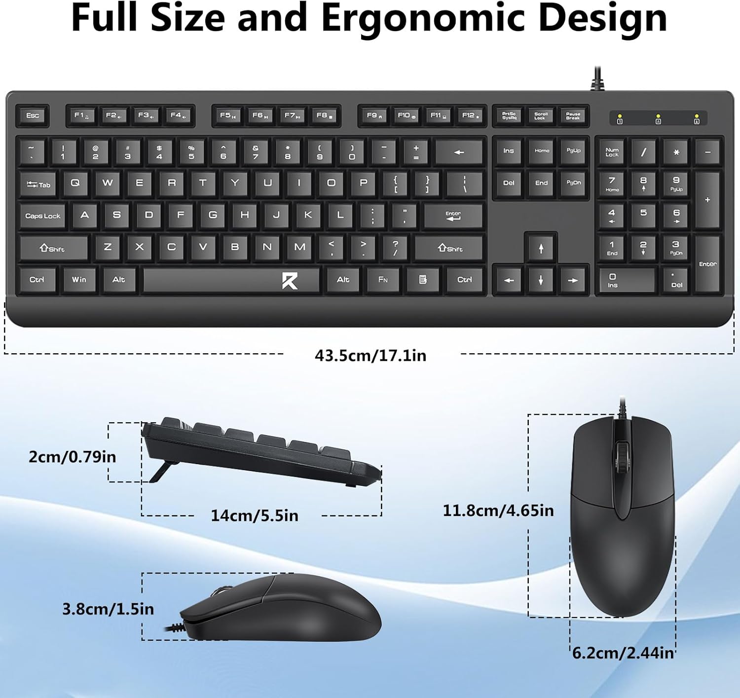 Клавіятура і мыш, распрацаваныя для доўгатэрміновай надзейнасці, выраблены з трывалых матэрыялаў, здольных вытрымліваць штодзённае выкарыстанне. Класічная чорная аздабленне дапаўняе шырокі спектр камп'ютэрных установак, ад офісных працоўных станцый да хатніх сталоў.