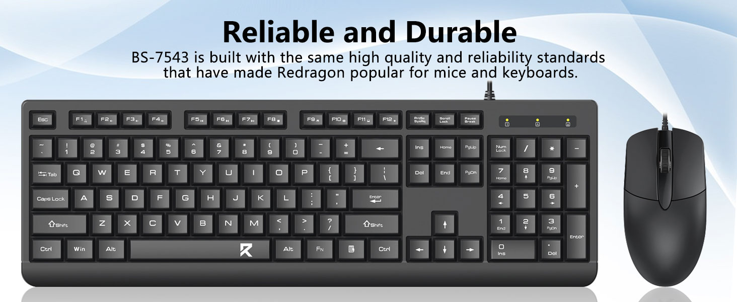 Камбінацыя правадной клавіятуры і мышы Black BC7543 распрацавана з улікам трываласці і камфорту. Клавіятура мае тонкую, але трывалую раму, якая дапамагае захоўваць стабільнасць падчас набору тэксту. Яго дызайн пад невялікім вуглом спрыяе натуральнаму становішчу запясця, зніжаючы нагрузку падчас працяглых сеансаў набору тэксту.