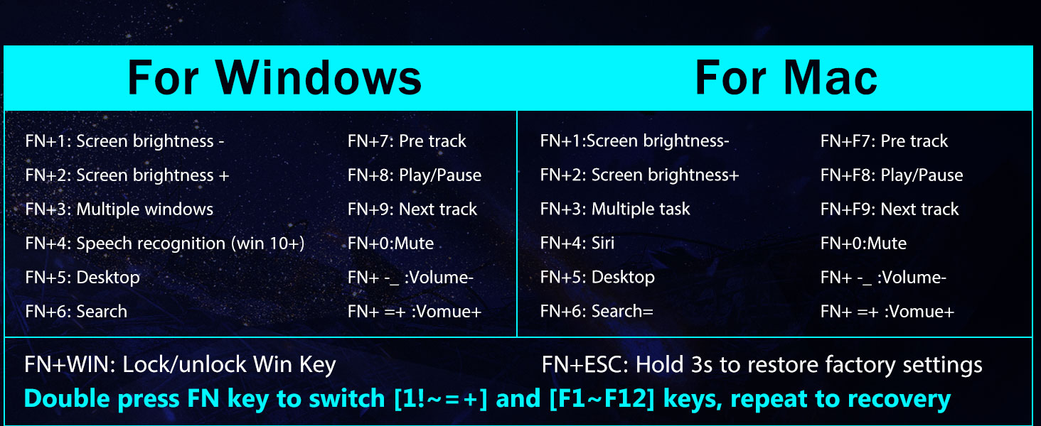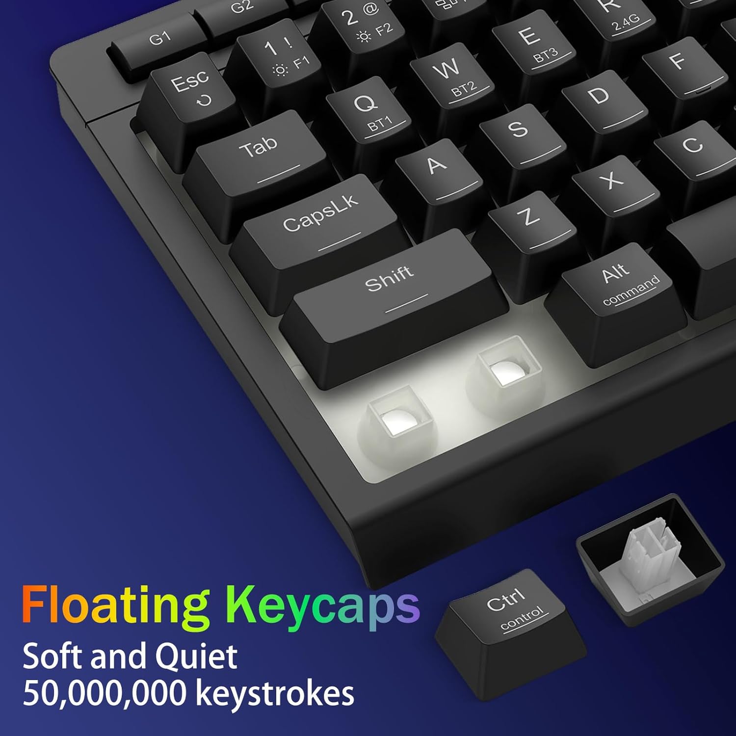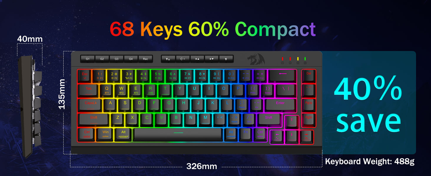 Універсальнасць трох рэжымаў і валоданне некалькімі прыладамі -Плаўна пераключайцеся паміж бесправадным рэжымам Bluetooth 5.0, 2,4 ГГц або правадным USB-C, падключаючы да 5 прылад адначасова (ПК, Mac, планшэты, тэлефоны, PS/XBOX). Лёгка перамыкайце прылады з дапамогай спалучэння клавіш або бакавой кнопкі — ідэальна падыходзіць для гібрыдных налад працы/гульні. Заставайцеся зараджанымі тыднямі з акумулятарам ёмістасцю 4000 мАг (30+ дзён у рэжыме чакання, 50 гадзін працы RGB).