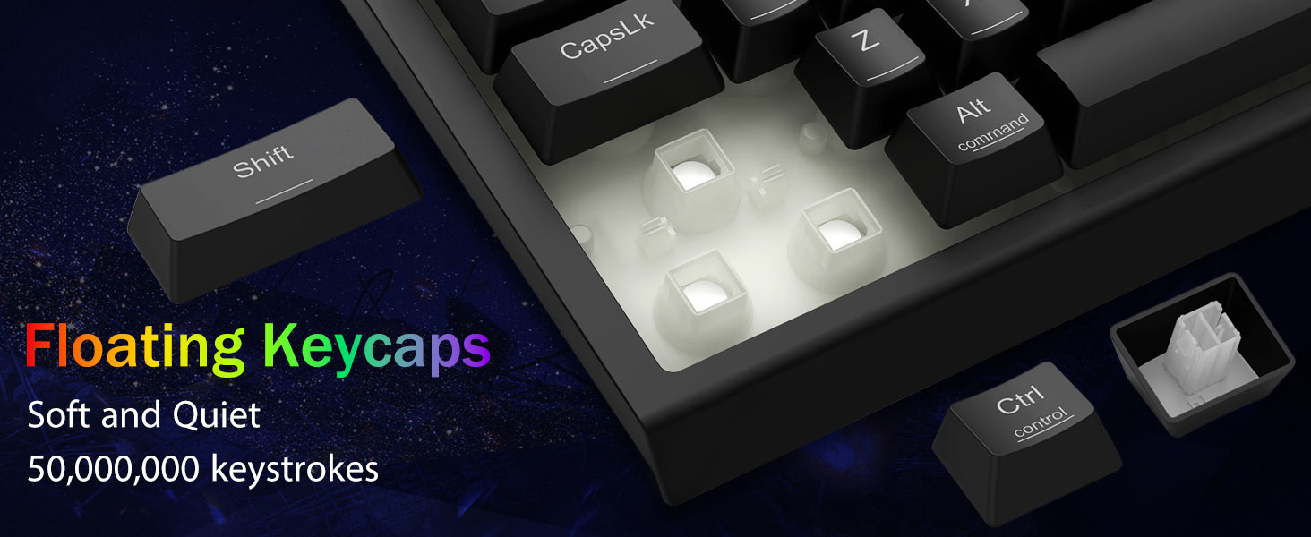 Шэпт - ціхі набор тэксту і створаны надоўга -Паспрабуйце амаль бясшумную працу з нашым бясшумным гульнявым пераключальнікам, ідэальным для офісных умоў і гульнявых установак. Класічная структура вулканічнага пераключальніка забяспечвае даўгавечнасць і ўражлівы тэрмін службы ў 50 мільёнаў націсканняў клавіш.