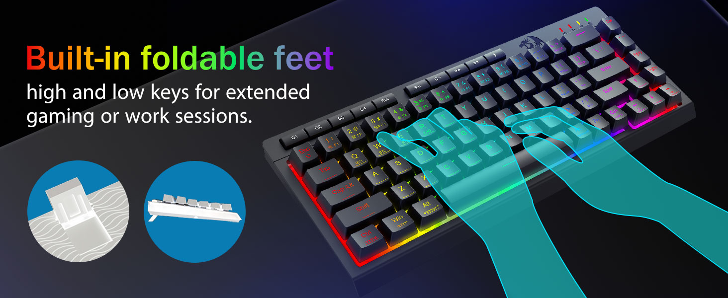 Імерсіўнае RGB-асвятленне і наладжвальная атмасфера -Дайце волю 16,8 мільёна колераў RGB з 8 прадусталяванымі рэжымамі (Rainbow Wave, Reactive Typing) + 6 профіляў DIY. Адрэгулюйце яркасць ад яркага святлення да схаванага рэжыму - ідэальна падыходзіць для начных гульняў або выкарыстання ў офісе.