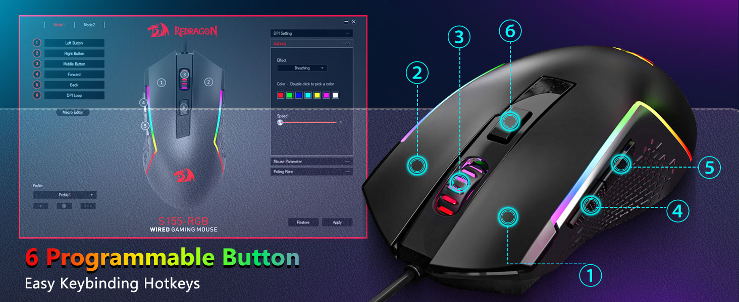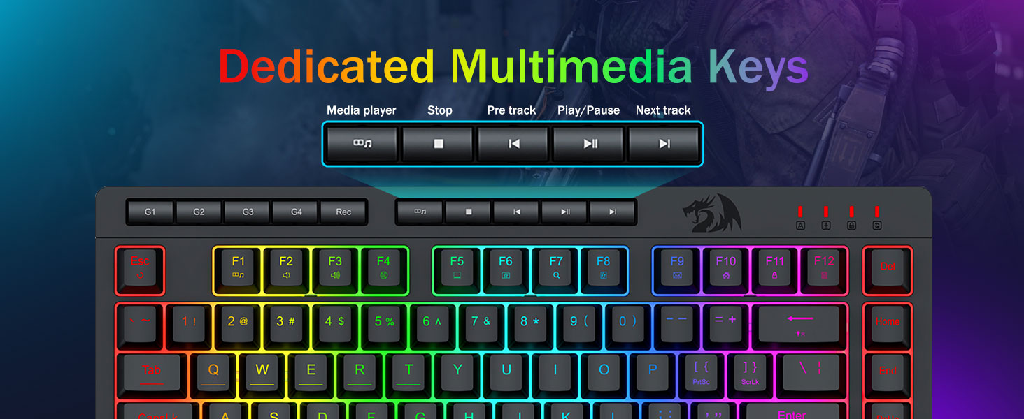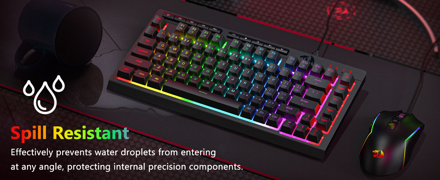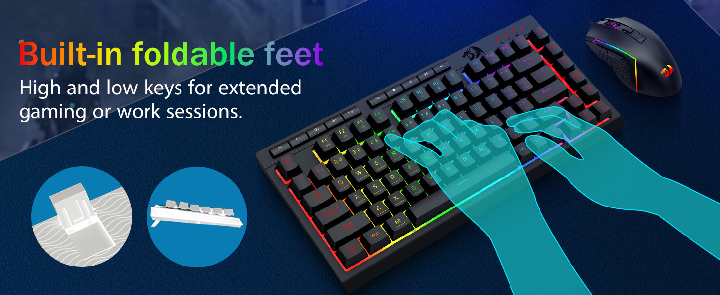 【Гульнявая клавіятура і мыш RGB】Гульнявая клавіятура мае 8 рэжымаў асвятлення RGB на выбар, а гульнявая мыш мае 8 светлавых эфектаў для пераключэння, і клавіятура можа быць адрэгулявана для 4 узроўняў хуткасці і яркасці ў адпаведнасці з вашымі перавагамі. Клавіятуры забяспечваюць выразную раўнамерную падсвятленне. Незалежна ад таго, ці з'яўляецца набор адным святлом, змяняючыміся светлавымі эфектамі або зусім без святла, гульнявая клавіятура і мыш Redragon адпавядаюць вашым патрэбам!