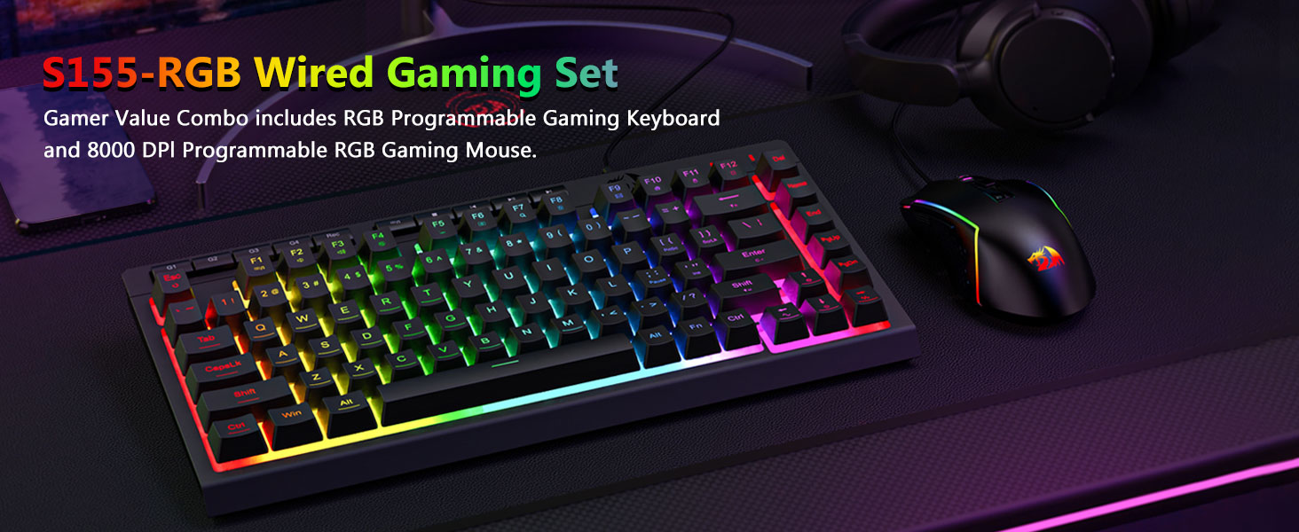 Chuangquan выступае як вядучы прафесійны вытворца і пастаўшчык у Кітаі, які спецыялізуецца на высакаякаснай гульнявой перыферыі пад паважаным брэндам Redragon. Мы з гонарам прадстаўляем чорную правадную гульнявую клавіятуру і мыш з падсветкай Black S155 RGB, камплект найвышэйшага ўзроўню, прызначаны для сур'ёзных геймераў. Клавіятура мае дынамічную RGB-падсветку з мноствам рэжымаў і эфектаў асвятлення, ствараючы захапляльную гульнявую атмасферу, у той час як мыш прапануе рэгуляваныя налады DPI для максімальнай дакладнасці і хуткага кіравання падчас гульні.