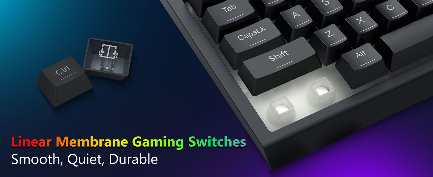 Клавішы створаны для забеспячэння паслядоўнай зваротнай сувязі і збалансаванага спрацоўвання. Гэта забяспечвае дакладны ўвод і надзейны ўвод падчас гульні або выкарыстання ў офісе.