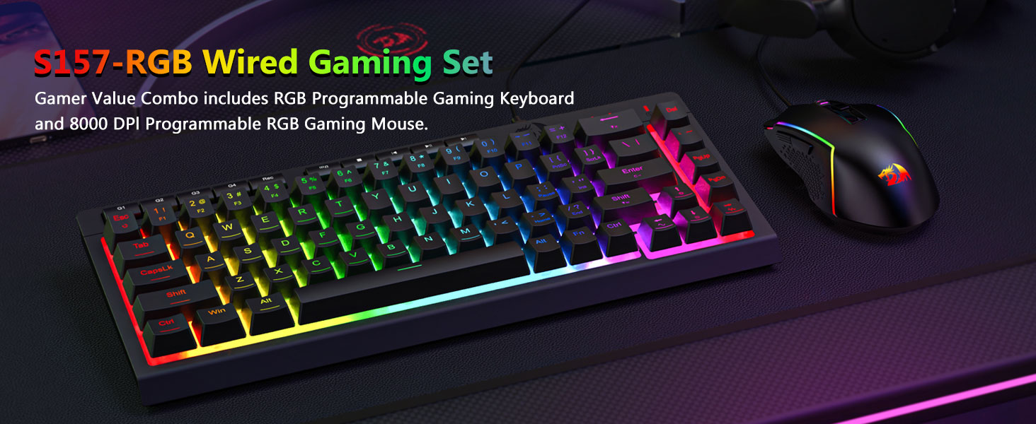 Камбінацыя правадной гульнявой клавіятуры і мышы Black S157 RGB з падсветкай з простым дызайнам і надзейнай функцыянальнасцю з'яўляецца надзейным выбарам для карыстальнікаў, якім патрэбна стабільная прадукцыйнасць уводу ў розных асяроддзях.
