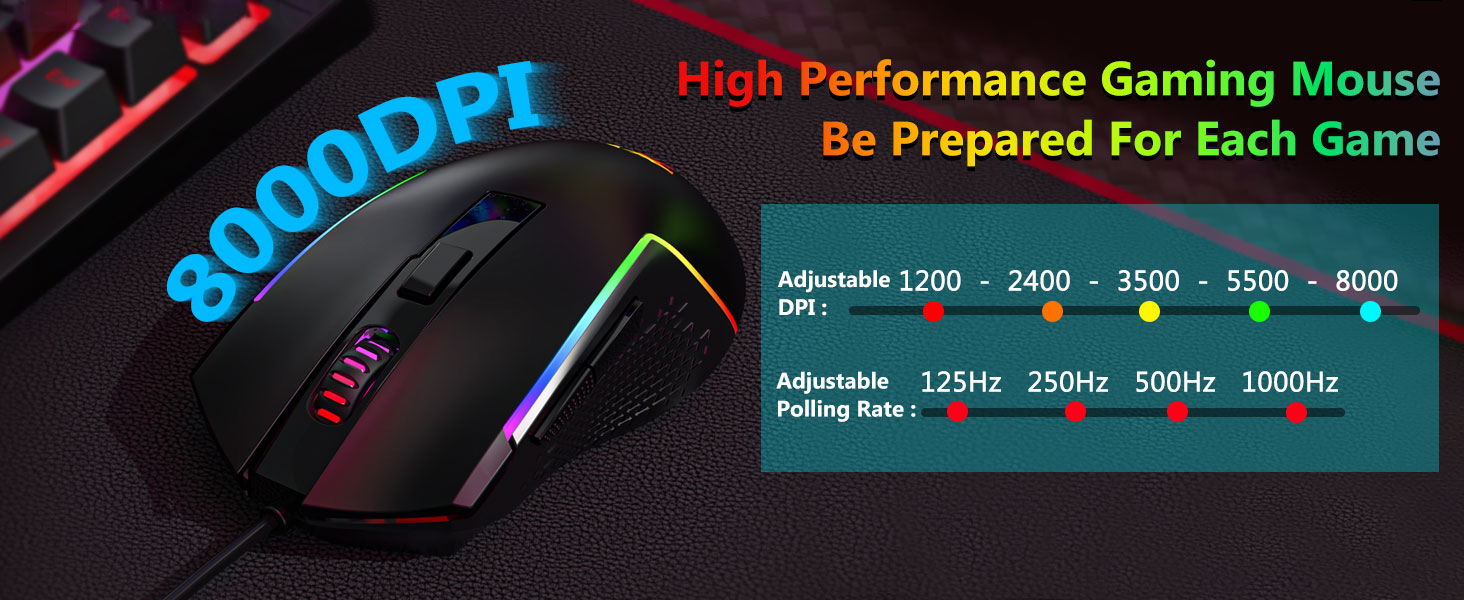 Мыш, якая ўваходзіць у камплект, абсталявана аптычным датчыкам, які падтрымлівае стабільнае адсочванне і плыўнае перамяшчэнне курсора. Рэгуляваныя налады DPI дазваляюць карыстальнікам супастаўляць адчувальнасць з рознымі задачамі.