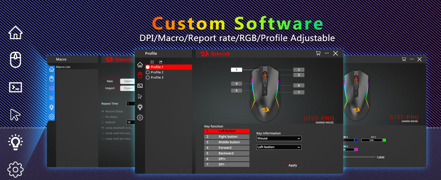 Макс. 12800 DPI з магчымасцю рэгулявання- Абсталявана 5 убудаванымі ўзроўнямі DPI, якія дазваляюць рэгістраваць рухі мышы ў кожным кропкавым месцы. 5 узроўняў DPI бясплатныя для DIY з праграмным забеспячэннем, дазваляюць геймерам хутка пераключацца ў гульні.