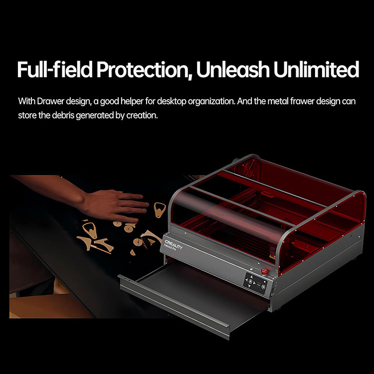 · ❤️ Маленькая машына, вялікія дасягненні:Гравіроўка Creality Falcon2 Pro 22W мае вялікую рабочую плошчу 15,75 * 16,34 цалі (400 * 415 мм). Вызваліцеся ад абмежаванняў, вызваліце больш прасторы і атрымлівайце асалоду ад зручнага размяшчэння.