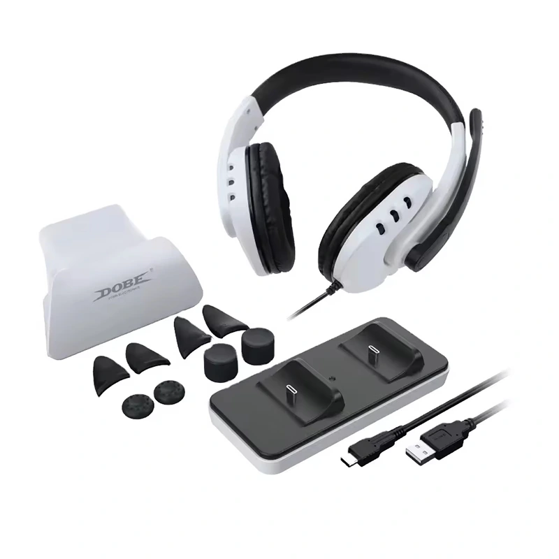 Індывідуальны гульнявы кантролер DOBE PS5 12 у 1, зарадная прылада для сядзення + правадныя навушнікі + падстаўка + кнопка трыгера + камплект вечка для джойсціка