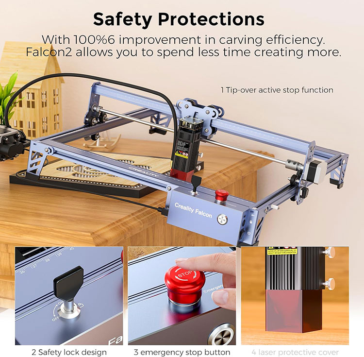 · 【Бяспечней і зручней】Гэтая версія гравёра таксама абноўлена кансоллю, абсталяванай кнопкай запуску ў адзін дотык для гравіроўкі або рэзкі, якая выкарыстоўваецца з картай TF для сапраўднай гравіроўкі ў аўтаномным рэжыме. Кансоль таксама абсталявана аварыйнай кнопкай і двума функцыямі ахоўнага замка. У выпадку аварыі націсніце аварыйную кнопку, і машына неадкладна спыніць працу, што забяспечвае большую абарону вашай бяспекі.