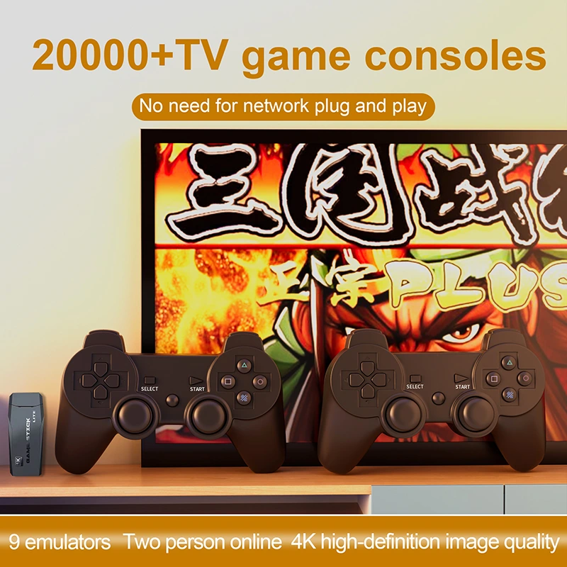 HUO JI M8 2.4G Wireless Nostalgia Retro Game Console. Відэагульня Plug and Play. Убудавана ў больш за 20000 гульняў. - Stick Game - Retro Play Game Stick з выхадам 4K HDMI. Даступная цана, гарантаваная якасць, запрашаем запытаць
