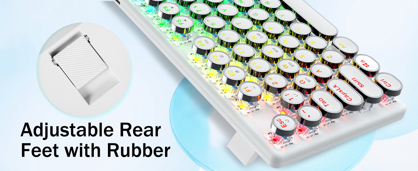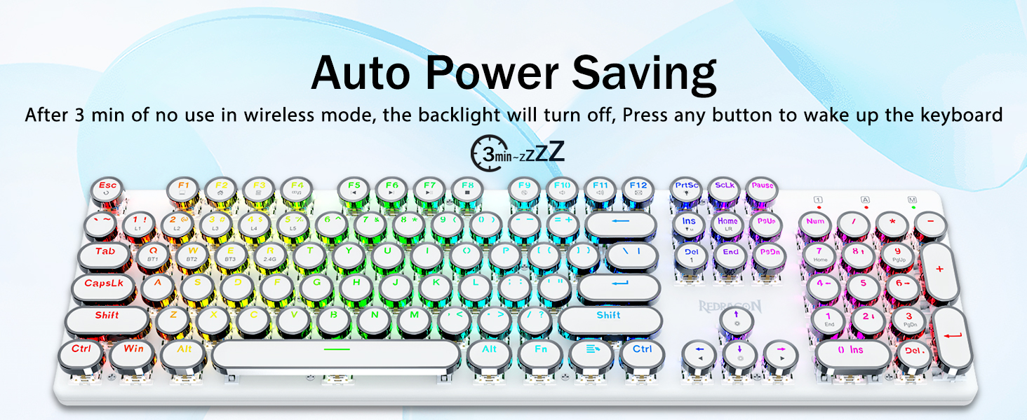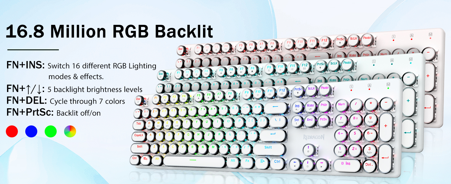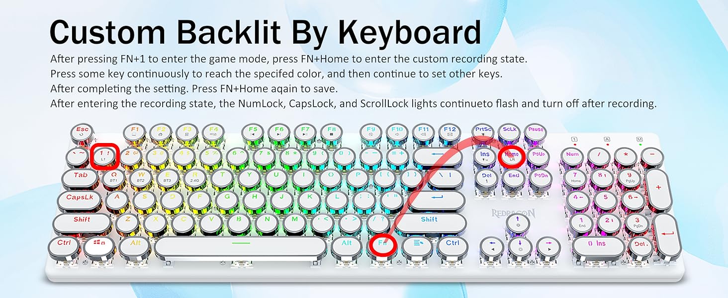 𝗣𝗿𝗼 𝗦𝗼𝗳𝘁𝘄𝗮𝗿𝗲 𝗦𝘂𝗽𝗽𝗼𝗿𝘁𝗲𝗱- Механічныя блакітныя перамыкачы Redragon забяспечваюць сярэднюю ўстойлівасць, чутны гук пстрычкі і тактыльную зваротную сувязь, забяспечваюць хуткае і дакладнае гульнявое асяроддзе і прадукцыйнасць. Вінтажная клавіятура ў стылі стымпанк з круглымі каўпачкамі выглядае як класічная пішучая машынка, забяспечвае камфортнае адчуванне набору тэксту і стабільнае націсканне.
