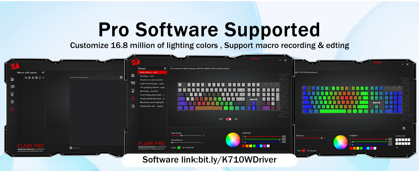 𝗣𝗿𝗼 𝗦𝗼𝗳𝘁𝘄𝗮𝗿𝗲 𝗦𝘂𝗽𝗽𝗼𝗿𝘁𝗲𝗱- Пашырце свае магчымасці, выкарыстоўваючы даступнае праграмнае забеспячэнне для стварэння ўласных новых рэжымаў і эфектаў. Макрасы з рознымі прывязкамі клавіш або спалучэннямі клавіш для больш эфектыўнай працы і гульняў. Спасылка на праграмнае забеспячэнне: bit.ly/K710WDriver.