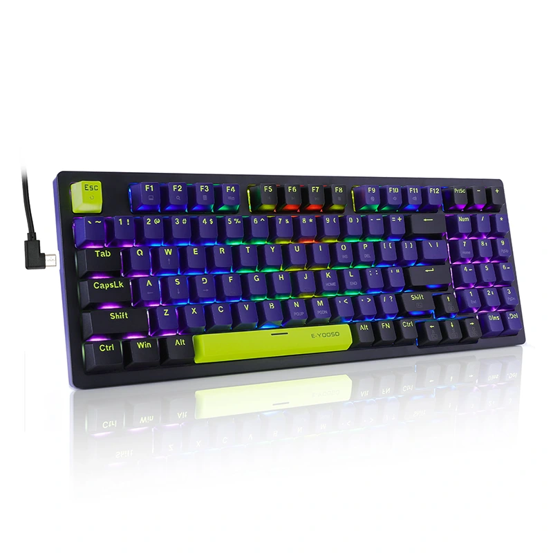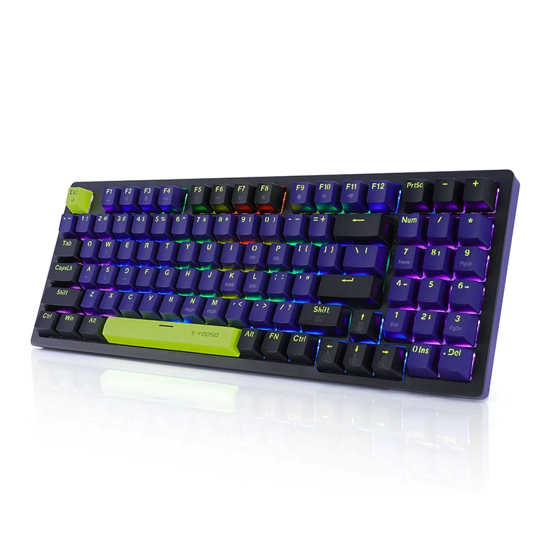 2. 2. Выдатны чырвоны перамыкач і пераключальнік bule: механічная клавіятура E-OOSO выкарыстоўвае пераключальнік rRed і перамыкач Bule, працягласць жыцця 50 мільёнаў націсканняў клавіш, адлегласць да спрацоўвання 2,0 мм, сіла спрацоўвання 45 г. 3. Гарачая замена і двайны ін'екцыйны каўпачок: гарачая замена PCB дазваляе свабодна замяняць 3-кантактныя перамыкачы без праблем з пайкай