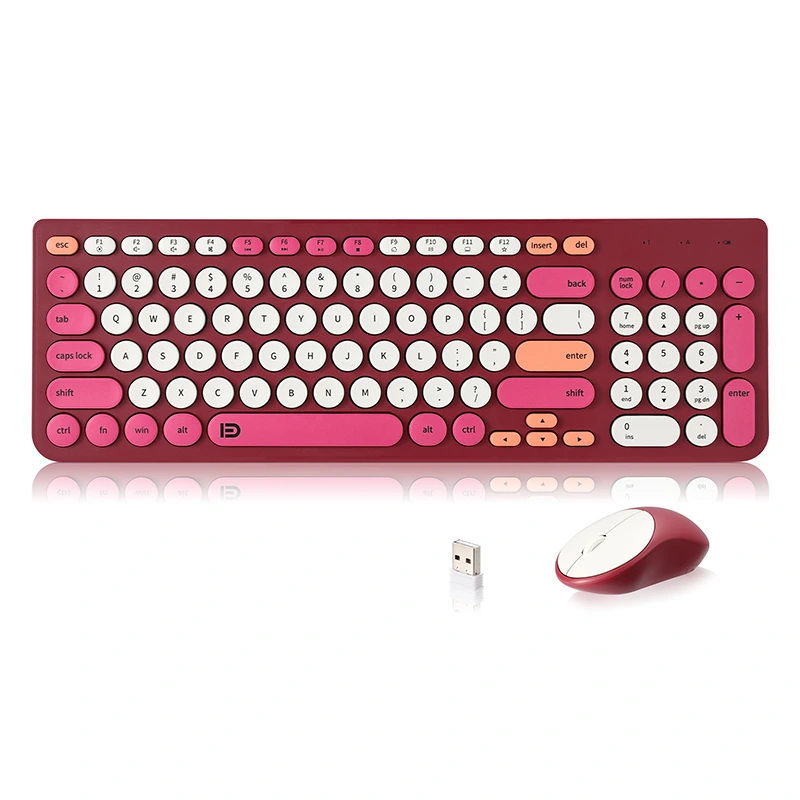 Бесправадная клавіятура і комба мышы з круглымі наборамі 2,4 ГГц